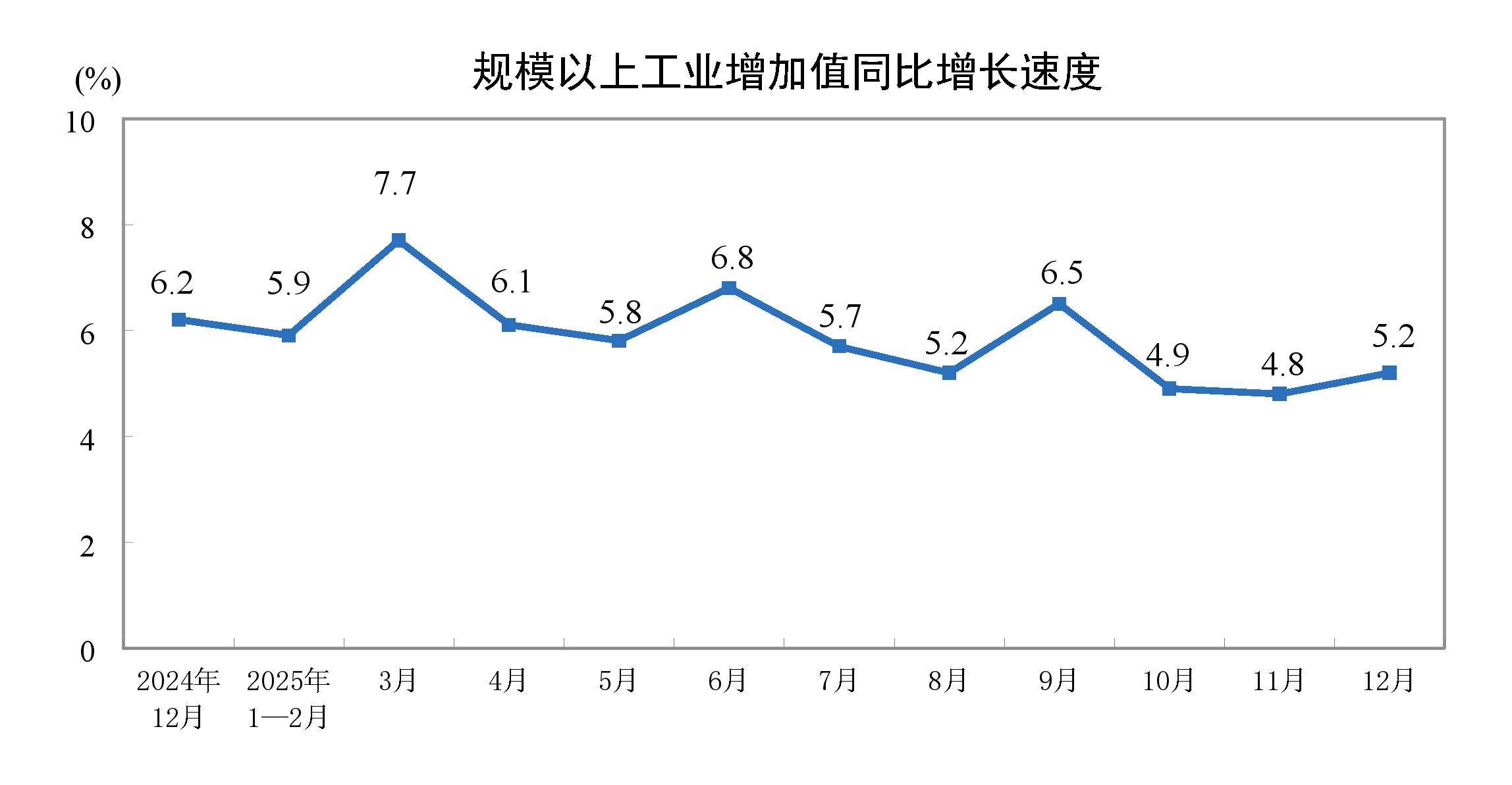 央视网音问:据国度统计局网站音问,2025年12月份,规模以上工业加多值同比本色增长5.2%(加多值增速均为扣除价钱成分的本色增长率)。从环比看,12月份,规模以上工业加多值比上月增长0.49%。2025年九游会j9体育(中国)官方网站,规模以上工业加多值比上年增长5.9%。