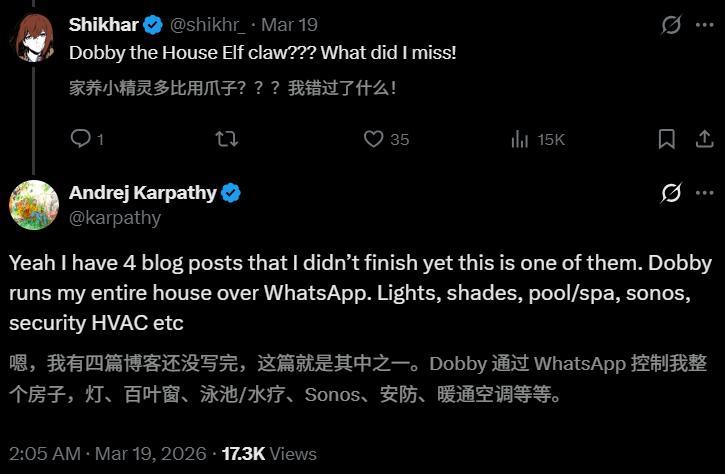 是的,多比仍是通过WhatsApp截至了Karpathy的统共这个词屋子。
