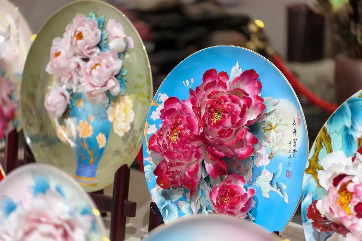 展出的牡丹瓷。仅是一个工序,就让现场的记者们体验到了不小的难度。拿入部属手里不太成效的一个“花瓣”,中央播送电视总台海外皮线记者王雨晴说,第一次作念这么的手工,嗅觉很有好奇瞻仰,但要念念握好一个花瓣,还需要许多技能性的尝试。他们正在制作的,是一种永不凋零的牡丹花——牡丹瓷。博物馆里的牡丹瓷,红玉瓣、黄金蕊、琥珀枝、翡翠叶,雍容荣华,正式典雅,涉笔成趣,美丽缜密。
