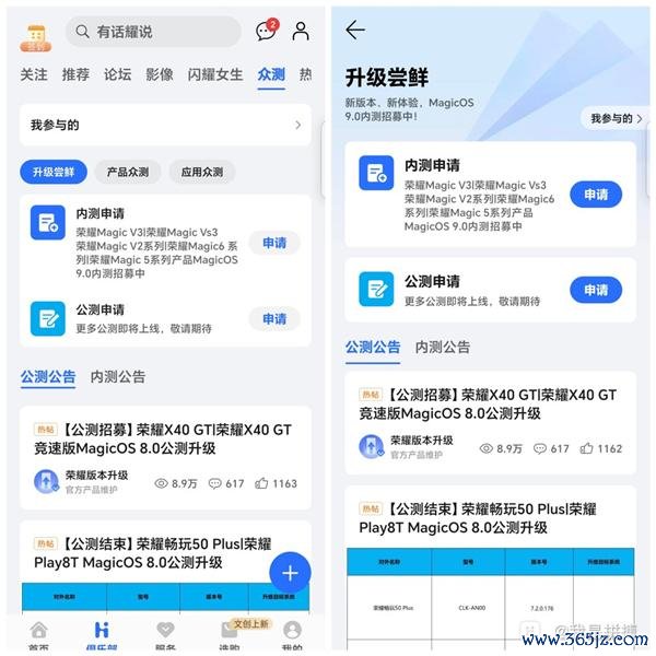 参与内测举止的用户可在\"我的荣耀\"APP端进行报名,翻开\"我的荣耀\"APP-俱乐部-众测-升级尝鲜-内测肯求,笔据提醒进行报名即可。