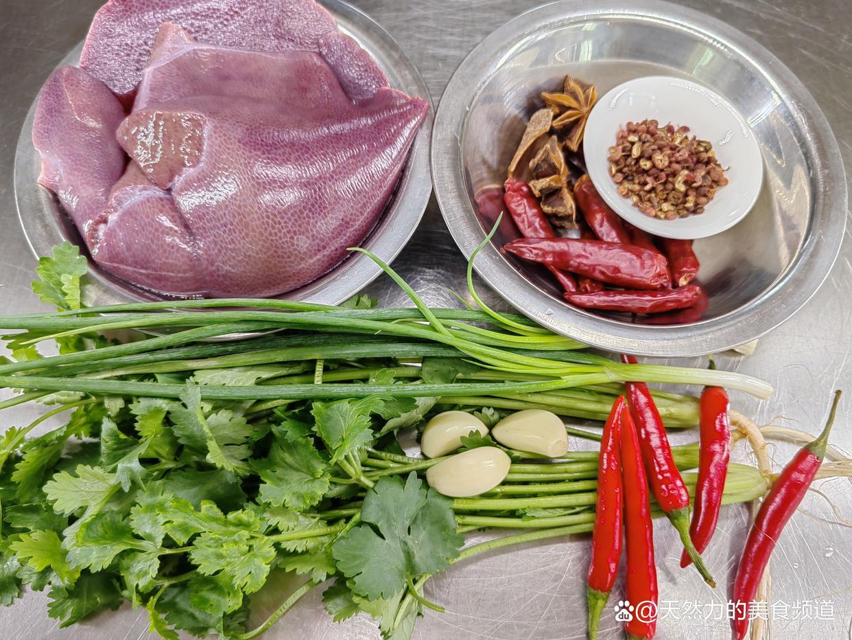 【配料】:生姜20克(煮猪肝用)、小葱3根(煮猪肝用)、八角2个(煮猪肝用)、桂皮1小块(煮猪肝用)、香叶3片(煮猪肝用)、花椒3克(煮猪肝用)、香菜3棵(煮猪肝用)、干辣椒8个(煮猪肝用)。