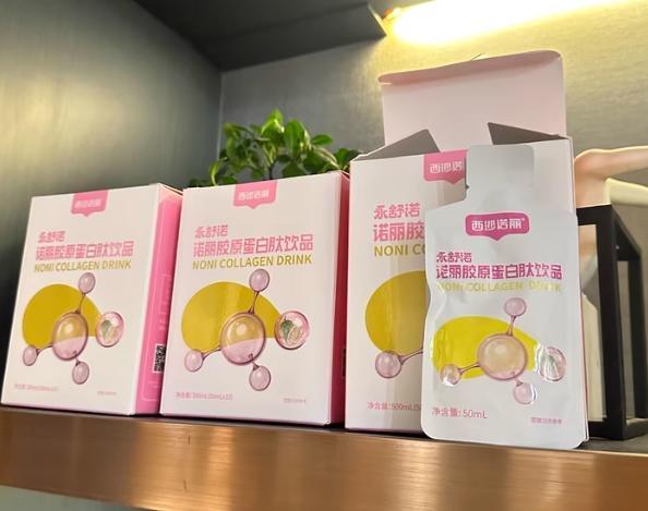 这款每盒粗略含有1000mg鱼胶原卵白肽,接管诺丽果发酵工艺,举座为液体型包装。