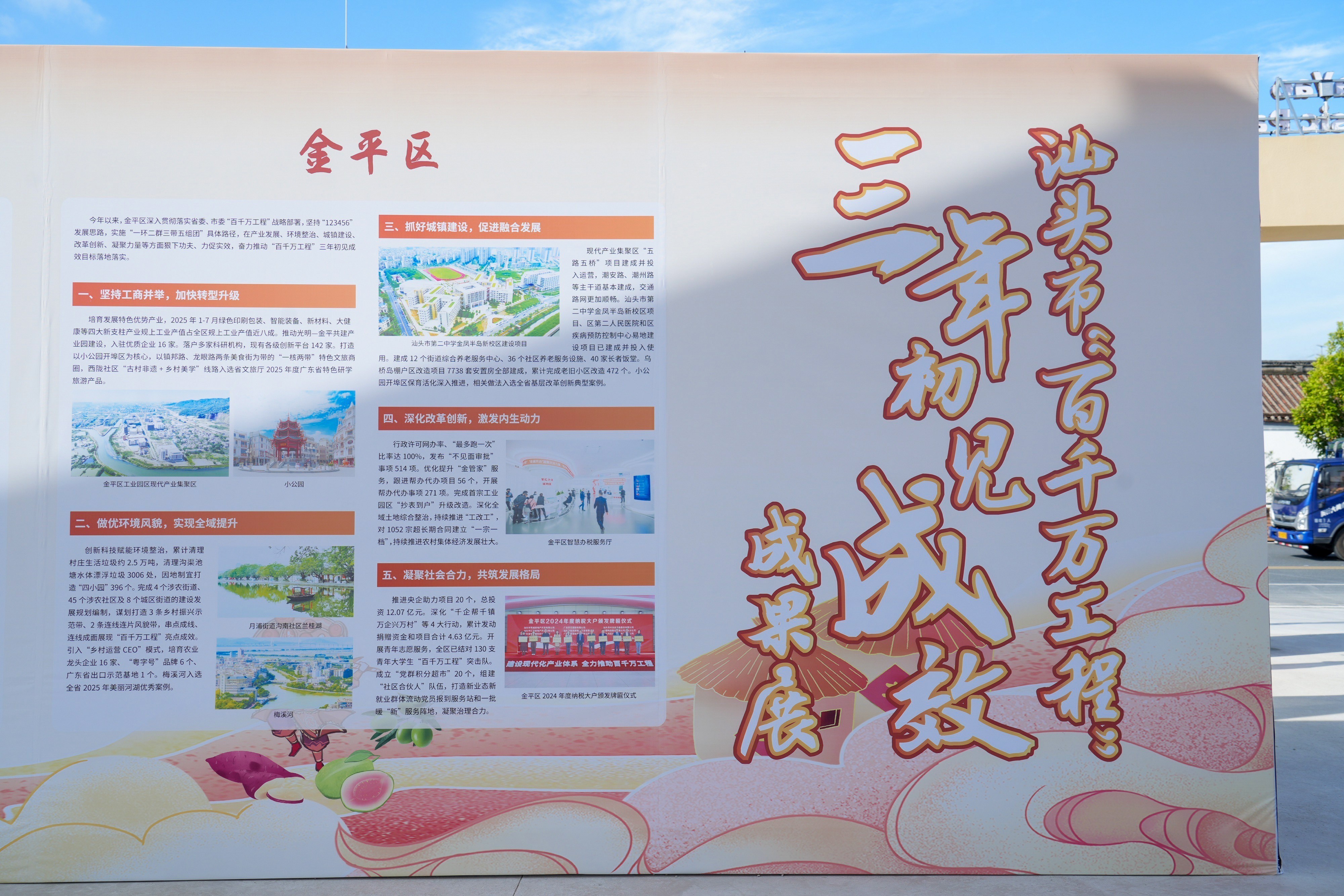 现场要点打造的汕头市“百千万工程”三岁首见奏效遵守展,从产业发展、东说念主居环境、社会处置、体制机制调动、社会力量参与等多维度,全面展示三年来六区一县在“百县千镇万村高质地发展工程”与乡村振兴建复中得回的轮廓奏效。