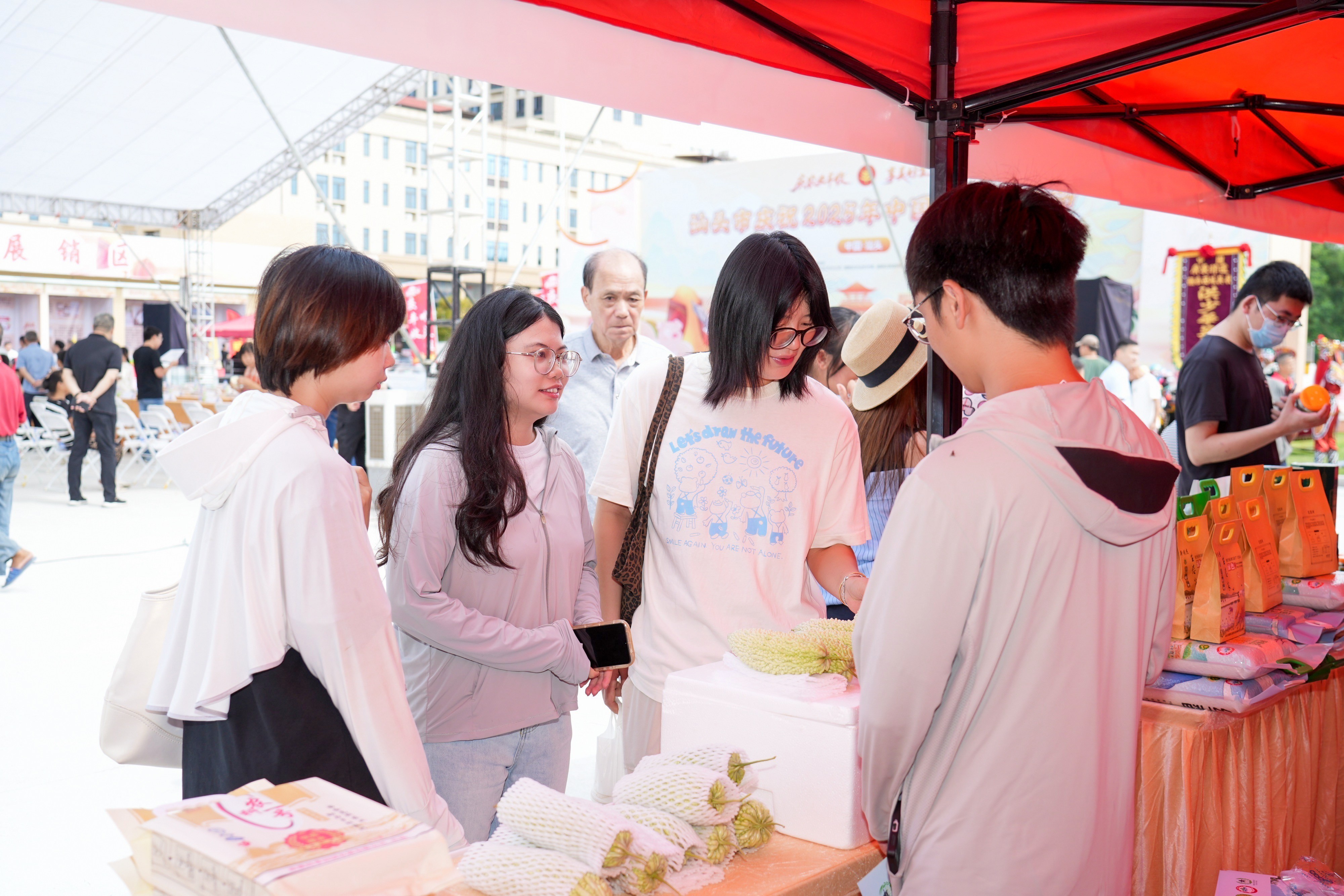 现场诞生的丰充主题市集交融农产物展销、非遗互动、科技体验与文旅推介于一体,打造了一个可不雅、可感、可品的千里浸式农耕文化展示空间。脾气农产物展销积蓄全市六区一县及潮南各镇街的牛肉丸、荔枝酒、狮头鹅等近百种名优产物;非遗互动区让市民近距离体验铜器、菜脯制作等传统身手;丰充打卡区以脾气农产物为创意元素,诞生真理互动点位,勾引繁多搭客驻足拍照;农业科技展区则汇集呈现无东说念主机植保、物联网监测等颖慧农业装备,彰显科技兴农新貌。所有这个词市集东说念主气高涨,飘溢着分享丰充、活力奔涌的节日氛围。