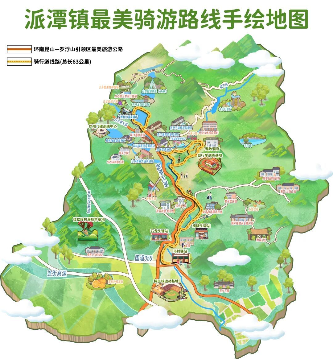 以答应崴蕤的派潭河国度级幸福河湖为主轴,骑游门道由南向北相识全镇,有机串联起白水仙瀑、大丰门等中枢生态景区,以及7家温泉旅店和百余家特点乡村民宿,构建起一条集“吃、住、游、购、娱”于一体的概括性安闲骑行径线。